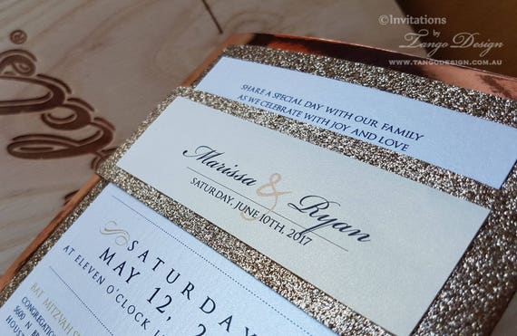 $ 0 0 344,00 AUDInvitaciones Participacion para bat mitzvah, quincenera o sweet 16 sixteen rosa dorada con papel brillantina